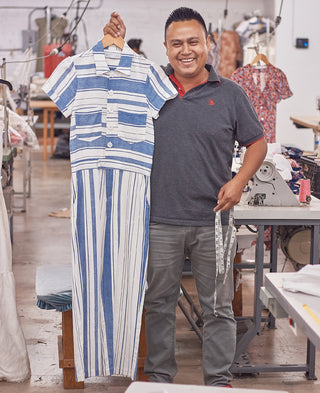 Nico’s wife also works at the factory, and he likes getting to see her during the day and eat lunch with her. He’s a big soccer fan, and he was even wearing a jersey when I talked to him. He favorite sewing work is using the single needle machine, which he’s especially fluent with.