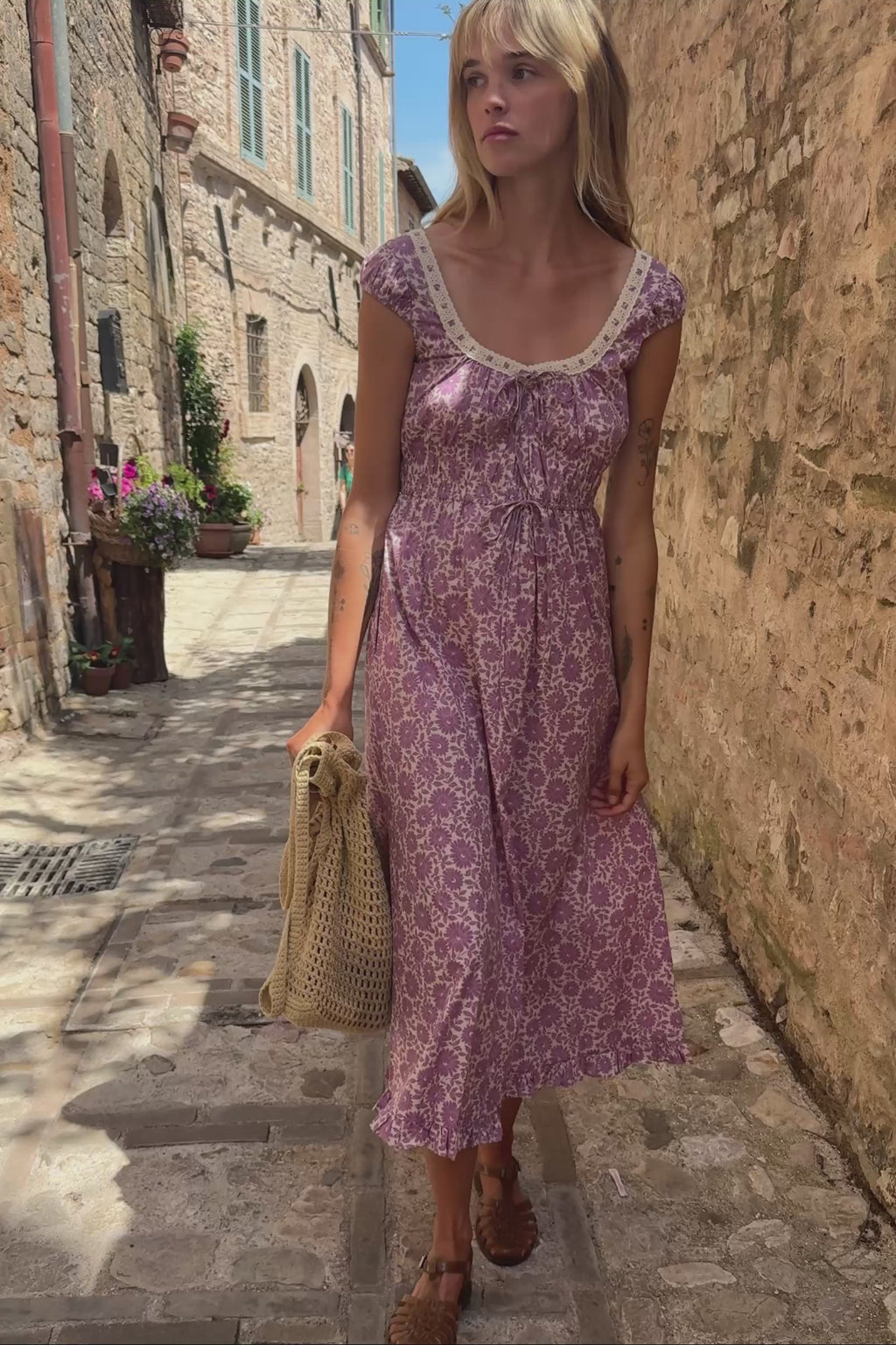 The Kelly is back for Summer with the sweetest details! A deep scooped front and back neckline of the Kelly Dress is accentuated with lace trim details, and the bodice is gathered with elastic for a comfortable and easy fit. With side seam pockets, this 100% Organic Cotton Kelly Dress is finished in our Aster Field Lilac print.