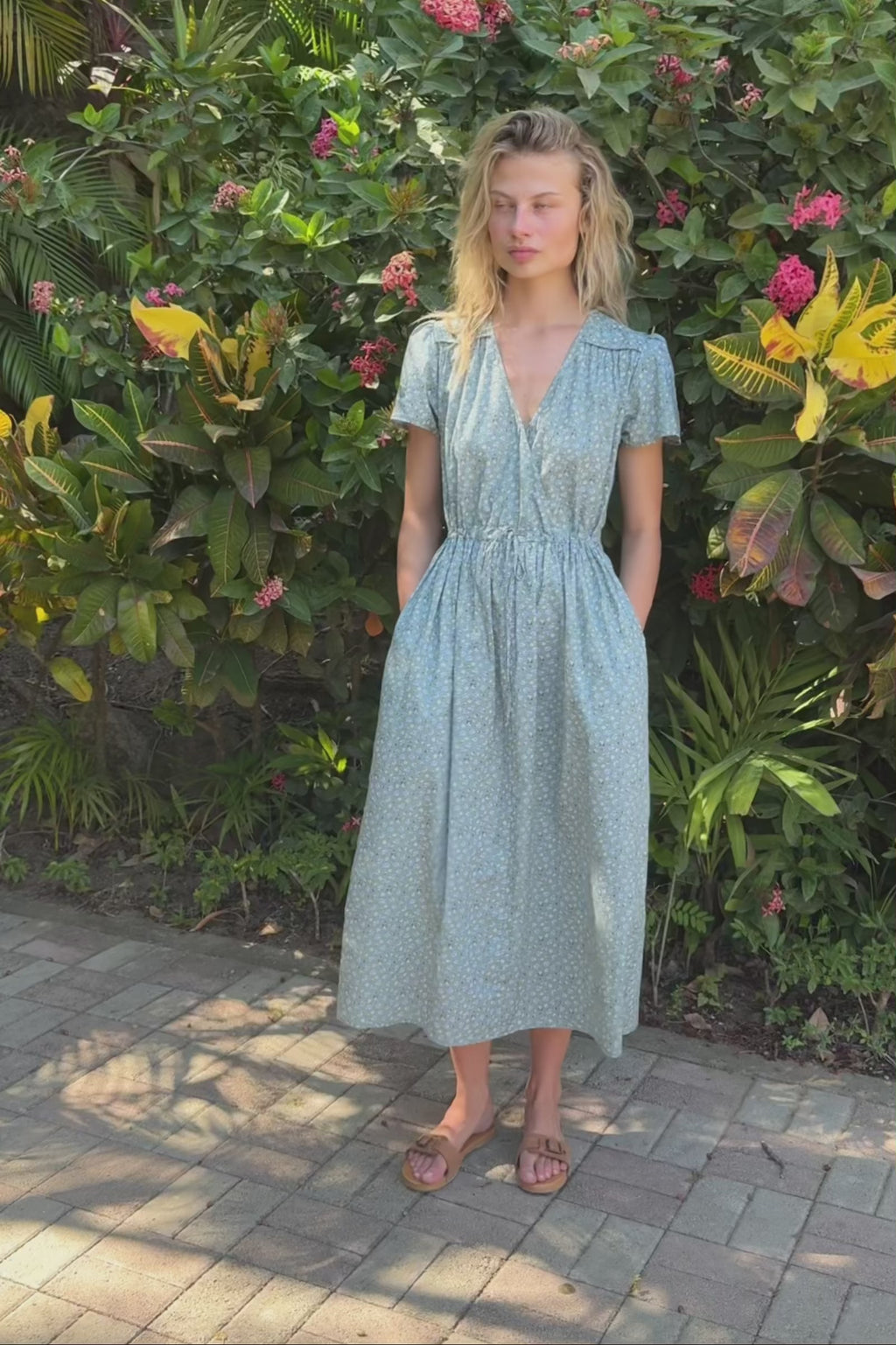 The Dawn Dress was the first piece Christy ever designed, and she's still our goes-with-everything, first-thing-we-reach-for-in-our-closet, never-fails-to-make-us-feel-beautiful piece. Updated for the season in our Verte Tulips print, this midi dress features a V-neck with a snap closure, a drawstring waist and pockets! Wear her with tennis shoes, wear her with boots - wear her with anything!