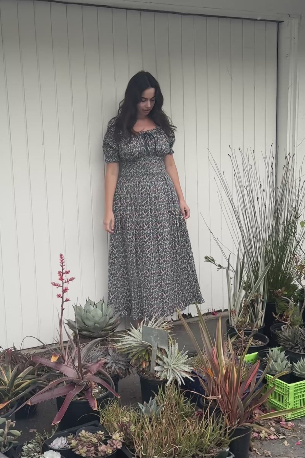An effortlessly romantic style with delicate smocking detail along the waist and sleeve. Crafted of 100% Regenerative Cotton, the Coralia Dress is an ode to our most loved and practical styles, infused with elevated details and finished in our seasonal Midnight Mushroom Medley print. Her bubble sleeve and extra wide rounded neckline were inspired by victorian era dresses, and can we worn on or off the shoulder.