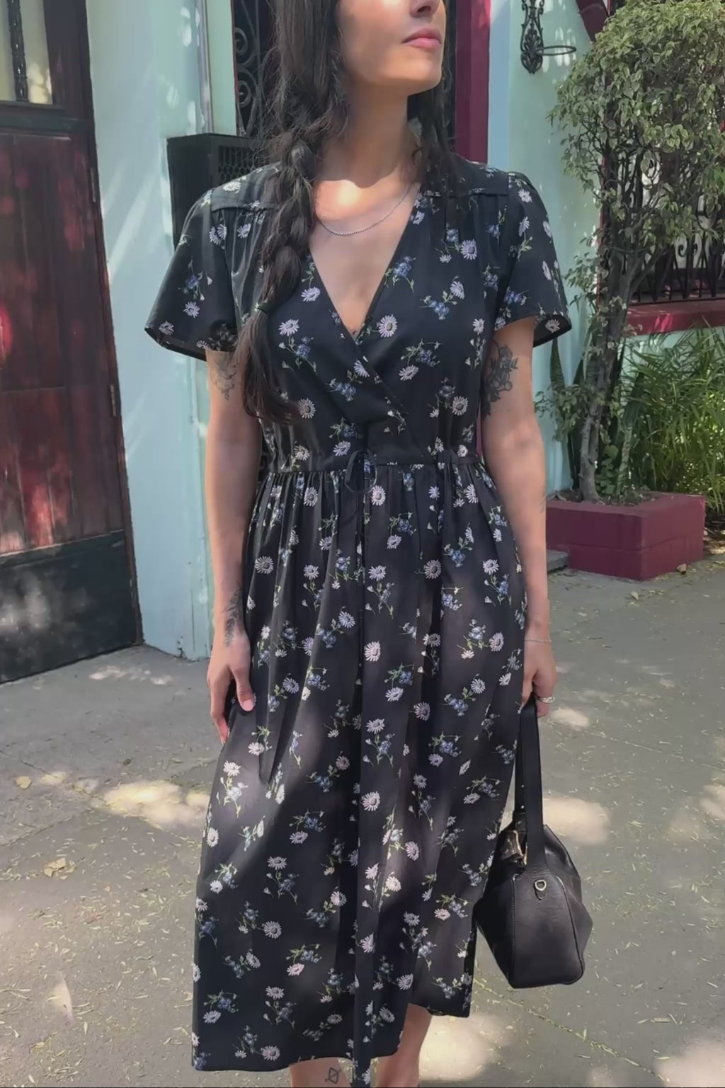 The Dawn Dress was the first piece Christy ever designed, and she's still our goes-with-everything, first-thing-we-reach-for-in-our-closet, never-fails-to-make-us-feel-beautiful piece. Updated for the season in our Raven Daisy print, this Dawn Dress features a V-neck with a snap closure, a drawstring waist and pockets! Wear this midi dress with tennis shoes, wear her with boots - wear her with anything!
