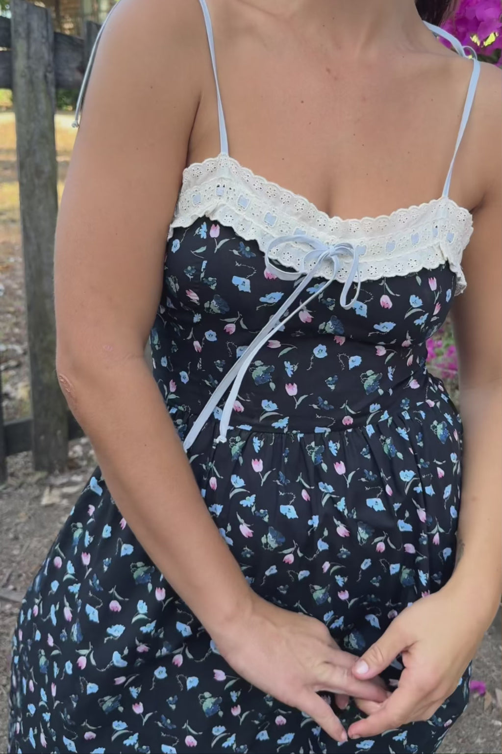 The Emma Dress is here in a beautiful Noir Poppies print. Crafted from 100% Regenerative Cotton and digitally printed with organic dyes, the Emma Dress is a work of artful intention. With vintage-inspired trim, a fitted silhouette, shoulder ties for easy adjustment and elastic smocking for comfort and ease, she’s sure to become a closet staple - an effortlessly elegant piece for every day.