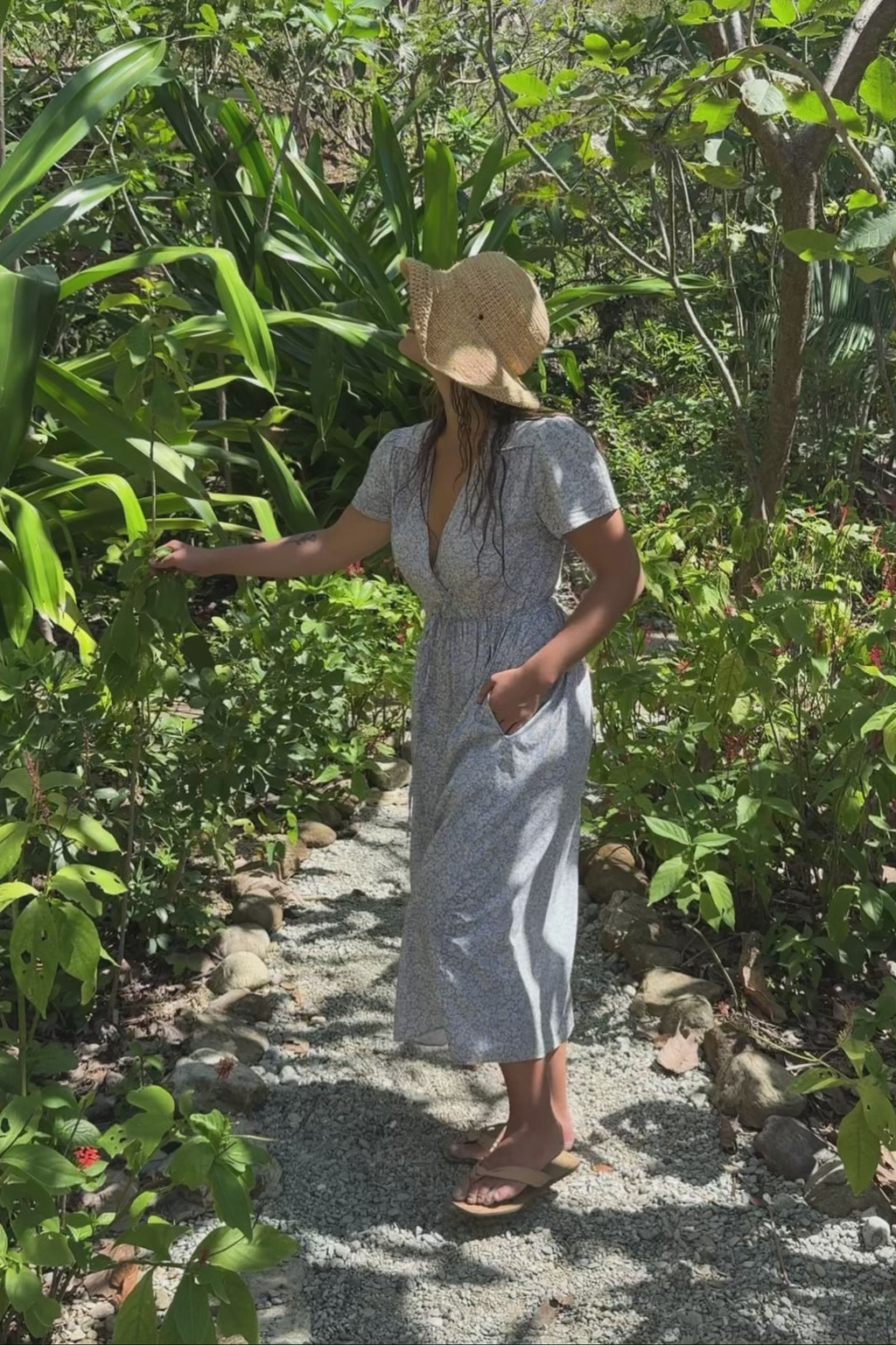 Please note, this updated colorway does not have contrast piping. Our namesake dress was the first piece Christy ever designed, and she's still our goes-with-everything, first-thing-we-reach-for-in-our-closet, never-fails-to-make-us-feel-beautiful piece. The Daisies Blue print is a seasonal favorite, digitally printed with organic dyes on 100% regenerative cotton. She features a V-neck with a snap closure and a drawstring waist. Wear her with tennis shoes, wear her with boots - wear her with anything!